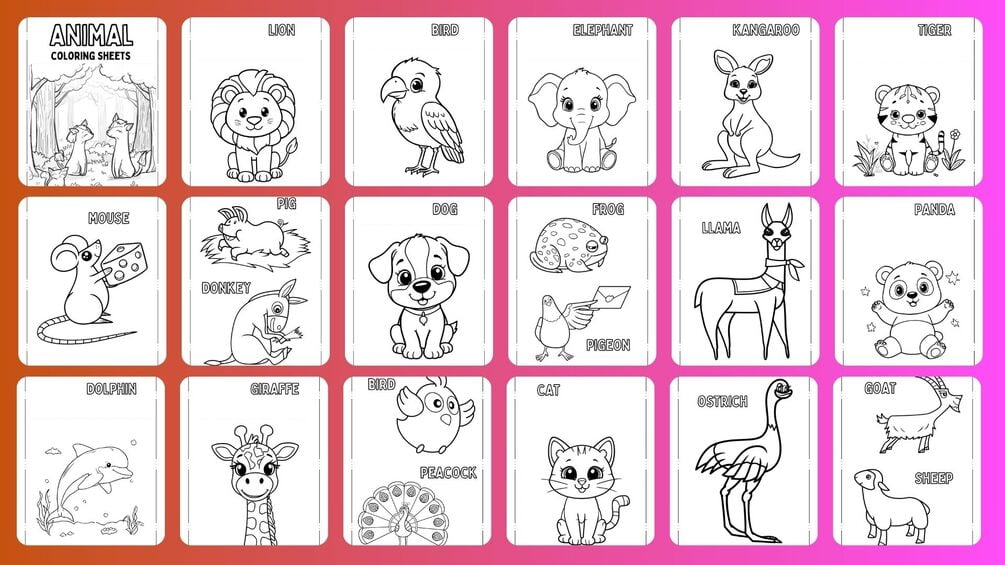 Animal Coloring Sheets, Printable Animal Coloring Pages PDF, Fun Coloring Book for Kids & Adults, Instant Digital Download